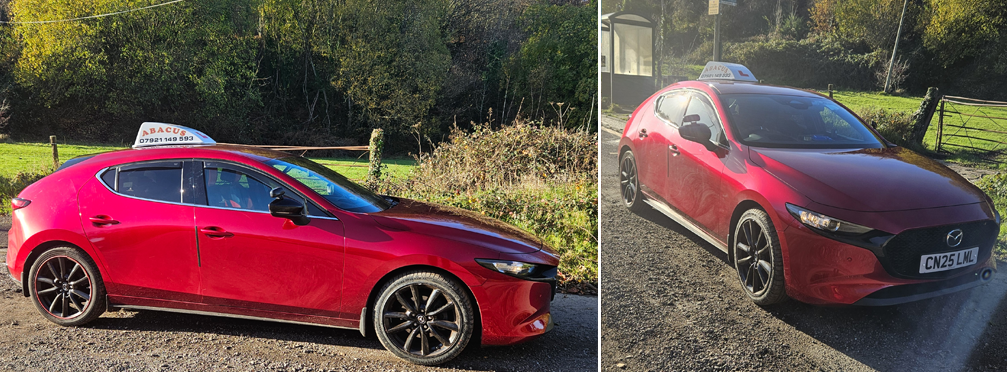 Our latest upgrade is a brand new 2025 Mazda 3, it's a brilliant car for you to learn in and a really cool colour, fully equipped with sat nav/ air con / reverse camera /anti-crash technology/lane departure warning/ and all the usual extras Mazda have